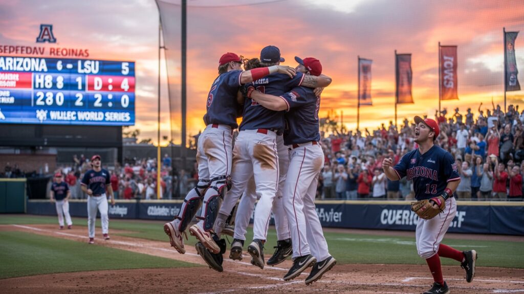 The highlight of the weekend came in Chapel Hill, where Arizona pulled off a jaw-dropping series turnaround against No. 5 North Carolina. After being demolished 18-2 in Friday’s opener, the Wildcats rallied to win the next two games, clinching their first CWS appearance under coach Chip Hale. Sunday’s deciding game featured a back-and-forth battle, but it was Arizona that delivered late. A costly UNC error and a clutch single from MLB Draft prospect Mason White sealed a dramatic 4-3 win.