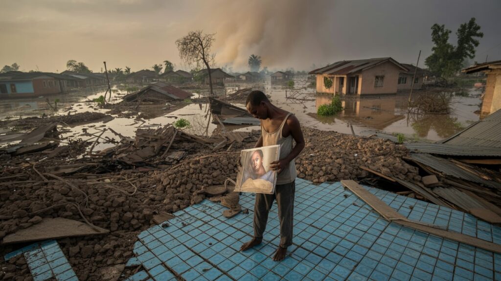 “I lost everything in this flood,” he said, staring out at the desolate landscape. “But the most painful loss is that of my family. The only thing I own now is the cloth I’m wearing—and even that was given to me by a friend.”